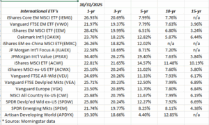 - The three JPMorgan positions were not intentional, although JPMorgan has been very supportive of this blog’s work, and when this blog was looking for an international fund / ETF in late ’24 to re-allocate to, the JFEAX fund – even in ’24 – was performing ahead of those funds followed.
