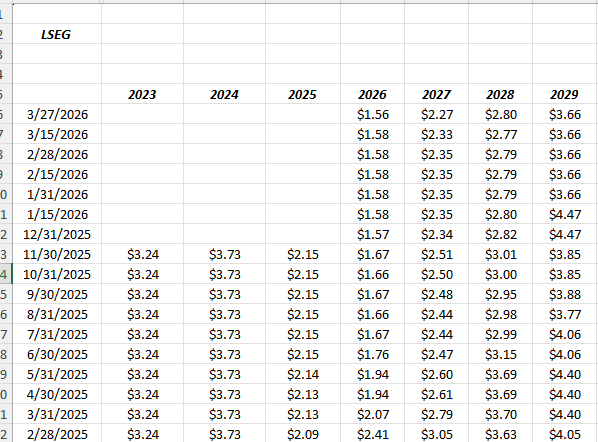 None of this is advice, recommendation, but only an opinion. Past performance is no guarantee of future results. Readers should gauge their own comfort with portfolio volatility, and adjust accordingly. LSEG is the sole source of this blog’s EPS and revenue estimates for both the SP 500 and individual stocks.