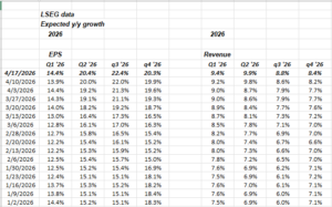 None of this is advice or a recommendation, but only an opinion. Past performance is no guarantee of future results. All EPS and revenue data is sourced from LSEG. Readers and clients should monitor their own comfort with portfolio volatility and adjust accordingly.