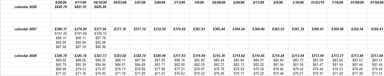 Here’s the weekly progression in SP 500 weekly dollar estimates since January 2 ’26:
